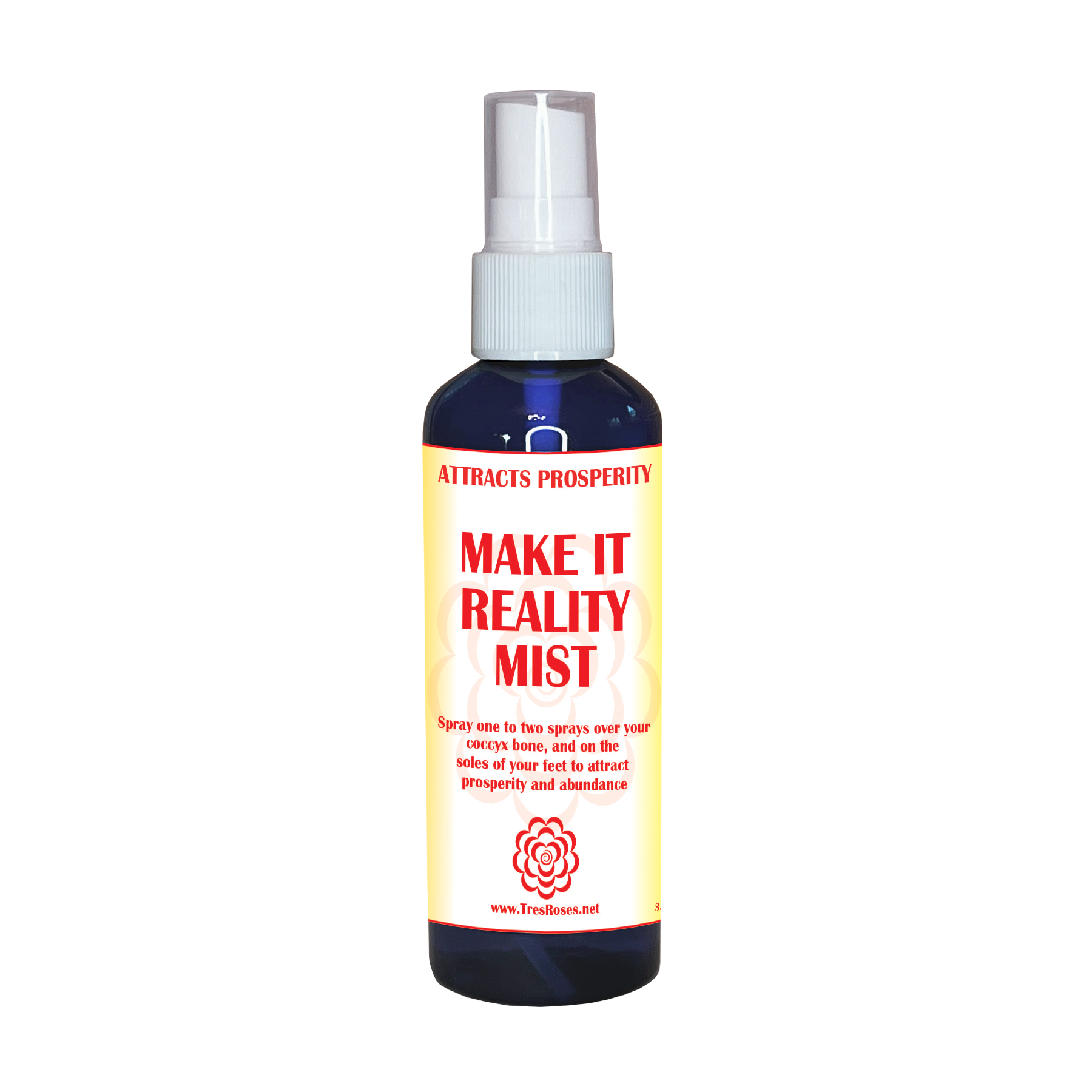 To experience the full benefits of Make it Reality Mist, simply spray the mist over your coccyx bone, and on the soles of your feet to attract prosperity and abundance, or on specific items that represent your dreams and intentions. As you inhale the invigorating aroma, visualize your goals coming to fruition as you feel the prosperity and abundance energy flowing through you.